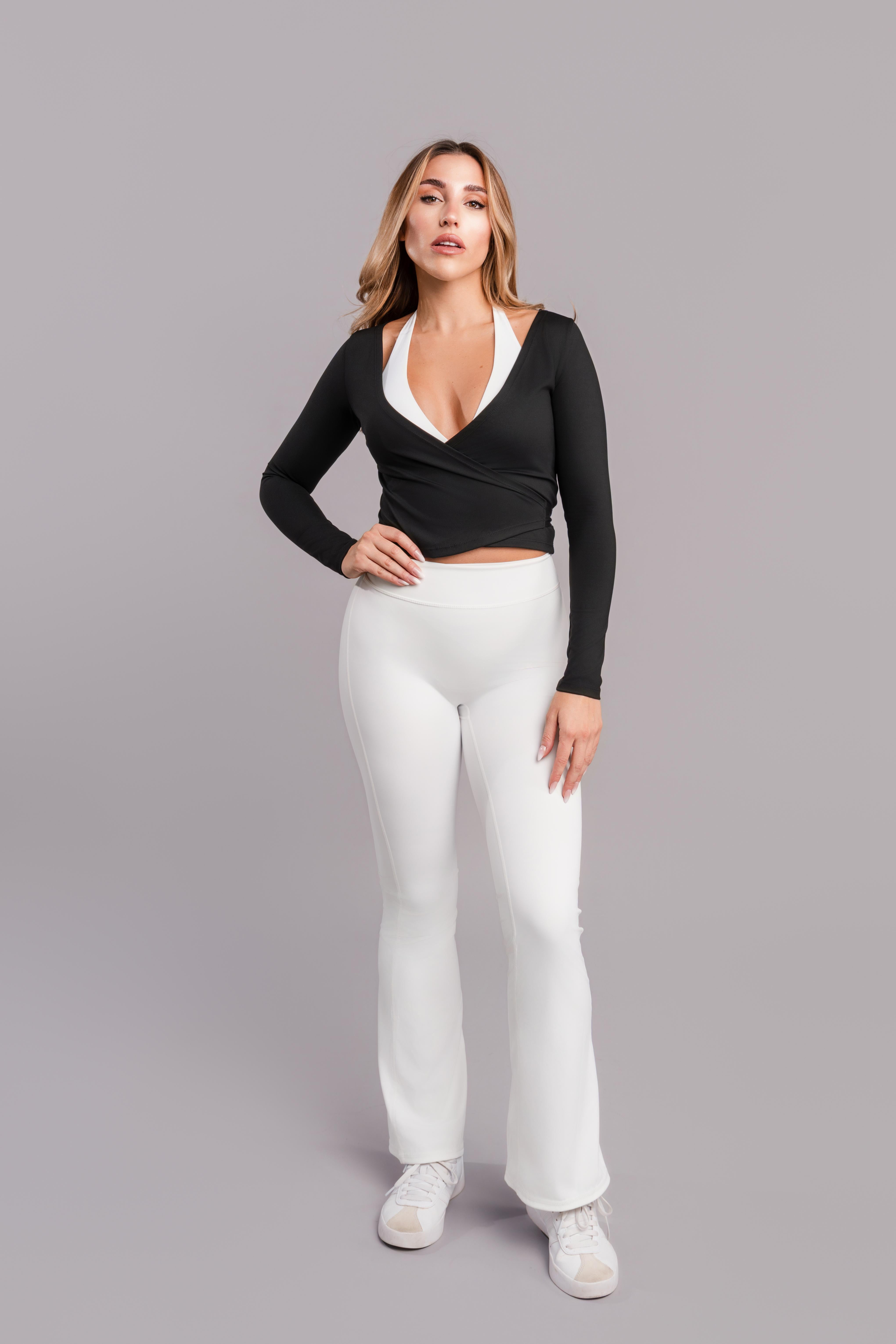This black wrapped top combines simplicity with style, offering a breathable fit perfect for both gym sessions and everyday wear. Its trendy design ensures you stay comfortable and fashionable wherever you go.